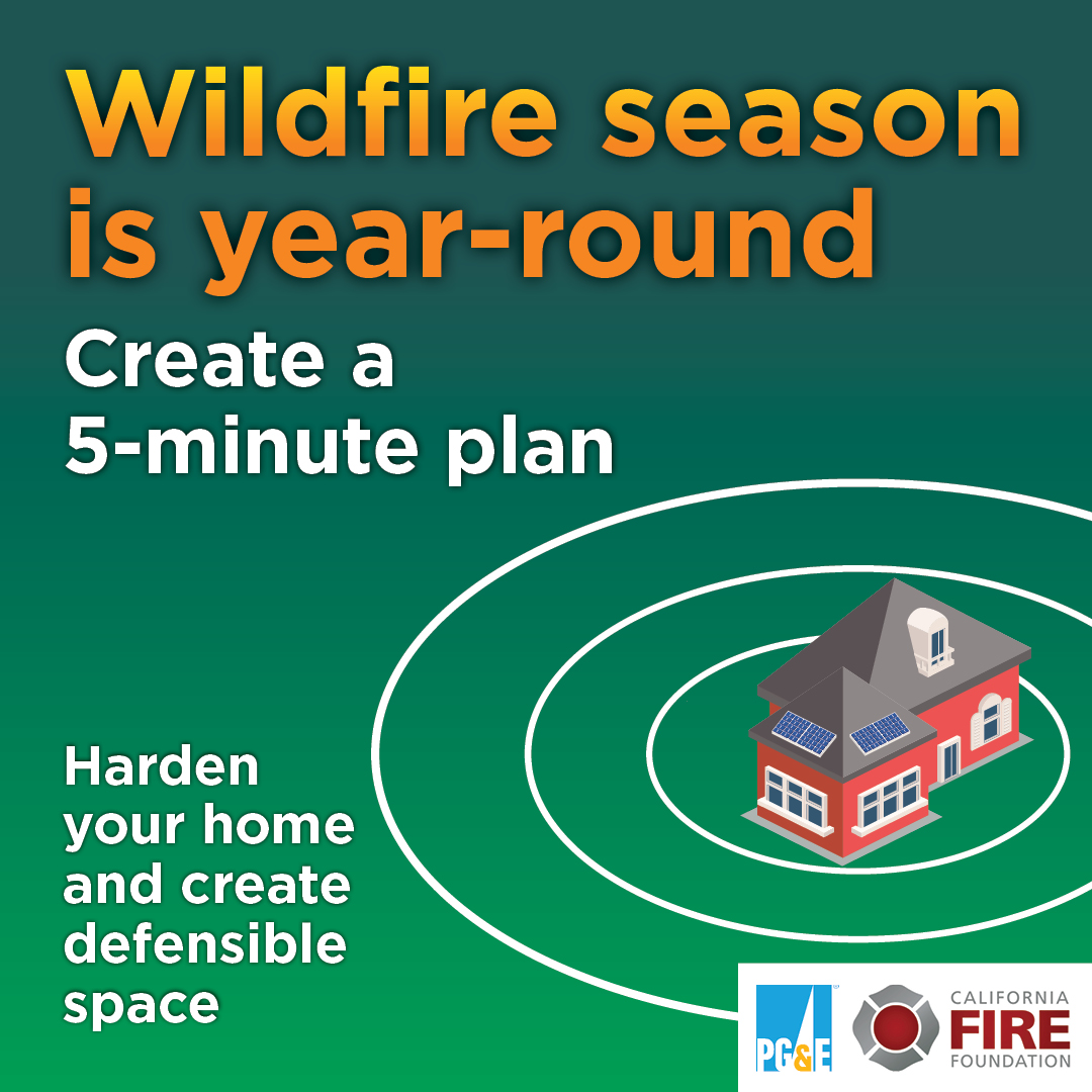 | | Wildfire preparedness starts with you! Wildfires are a year-round threat in California, making preparation essential. Defensible space is the buffer between your home and the vegetation (trees, grass, shrubs, and wildland) that surrounds it. The first 5 feet around your home is also your first line of defense against wildfires. Creating defensible space improves your home’s chance of surviving a wildfire and gives firefighters a safe area to work in to defend your home. Helpful Tips: - Clear: Clear vegetation, debris, and flammable materials from at least 100 feet around structures.